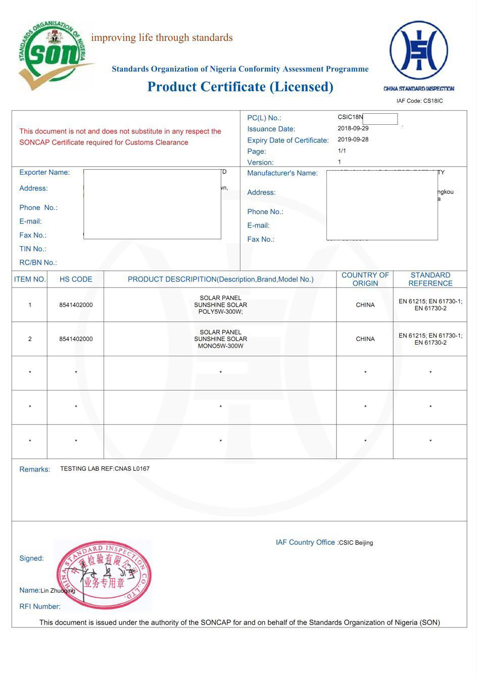 尼日利亚SONCAP认证